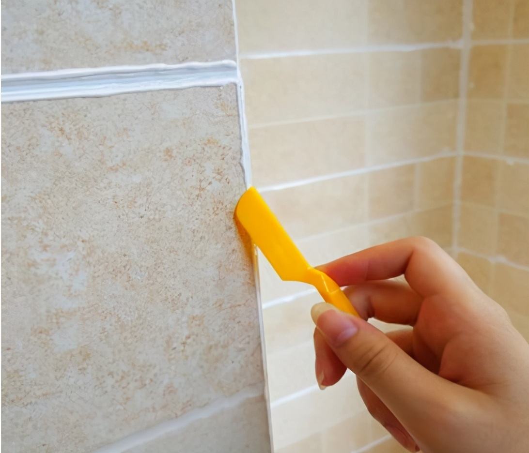 正常来讲,用环氧彩砂做出来的美缝干透之后是平整的,如果说你看不出来这个美缝是不是平整的,那么你就用手触摸一下缝隙的表面有没有凹凸感。如果有凹凸感,那么你就要注意了,施工师傅可能在买的环氧彩砂里面掺有杂质。