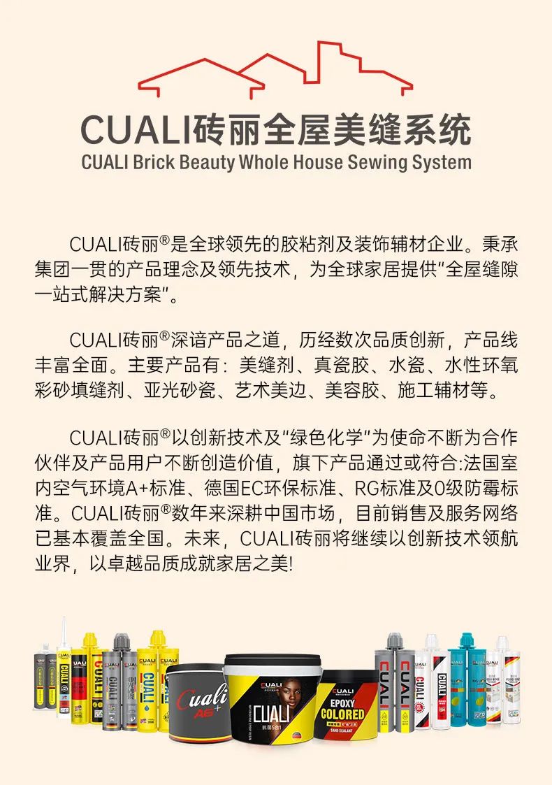 CUALI砖丽美缝一直走在美缝剂行业的领先行列,在行内的口碑比较好,深受广大家人们的信任!2022年我们更是加大线上渠道的拓展,为线下加盟店引流,当然这一切都离不开终端用户和合作伙伴们的信任和支持。