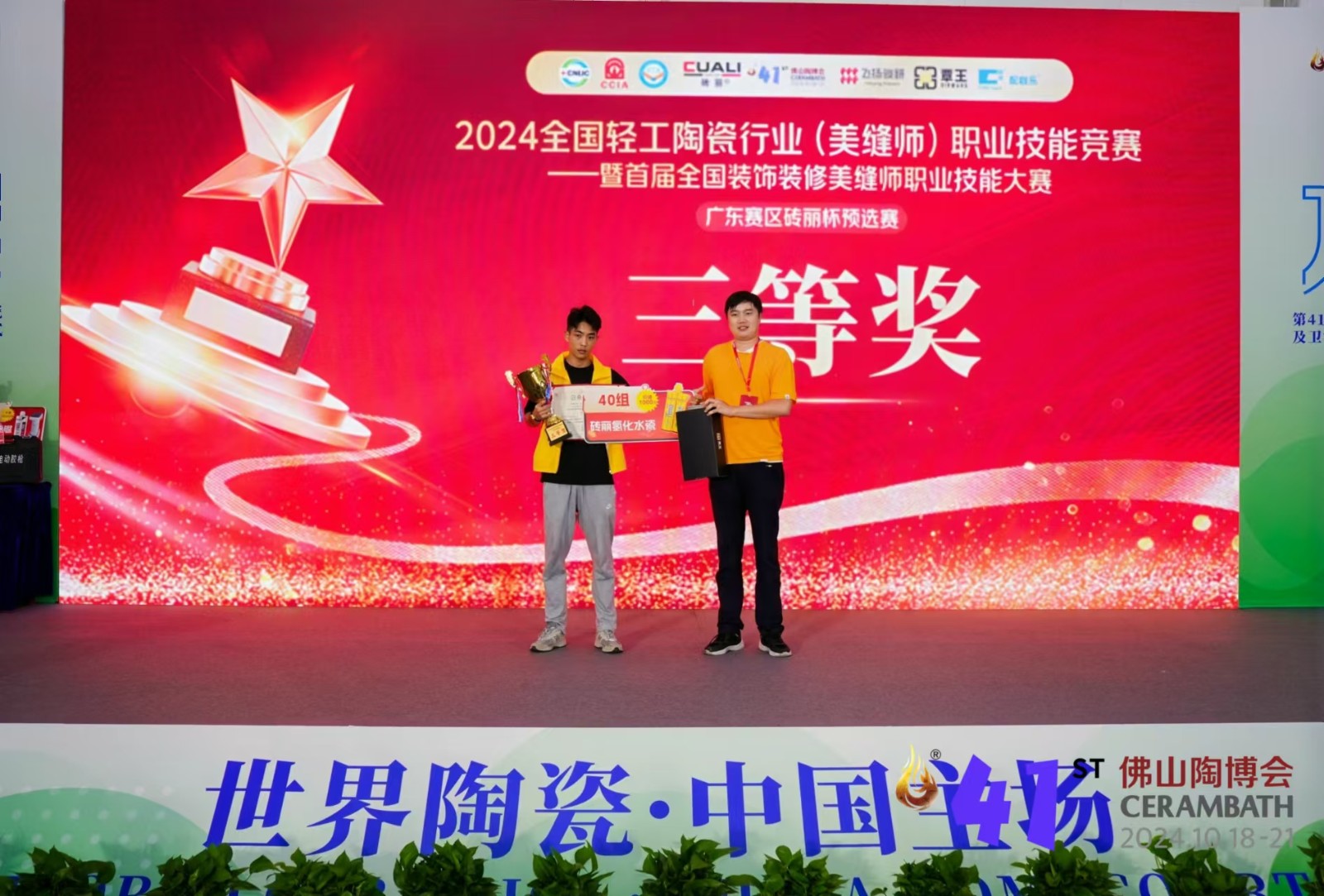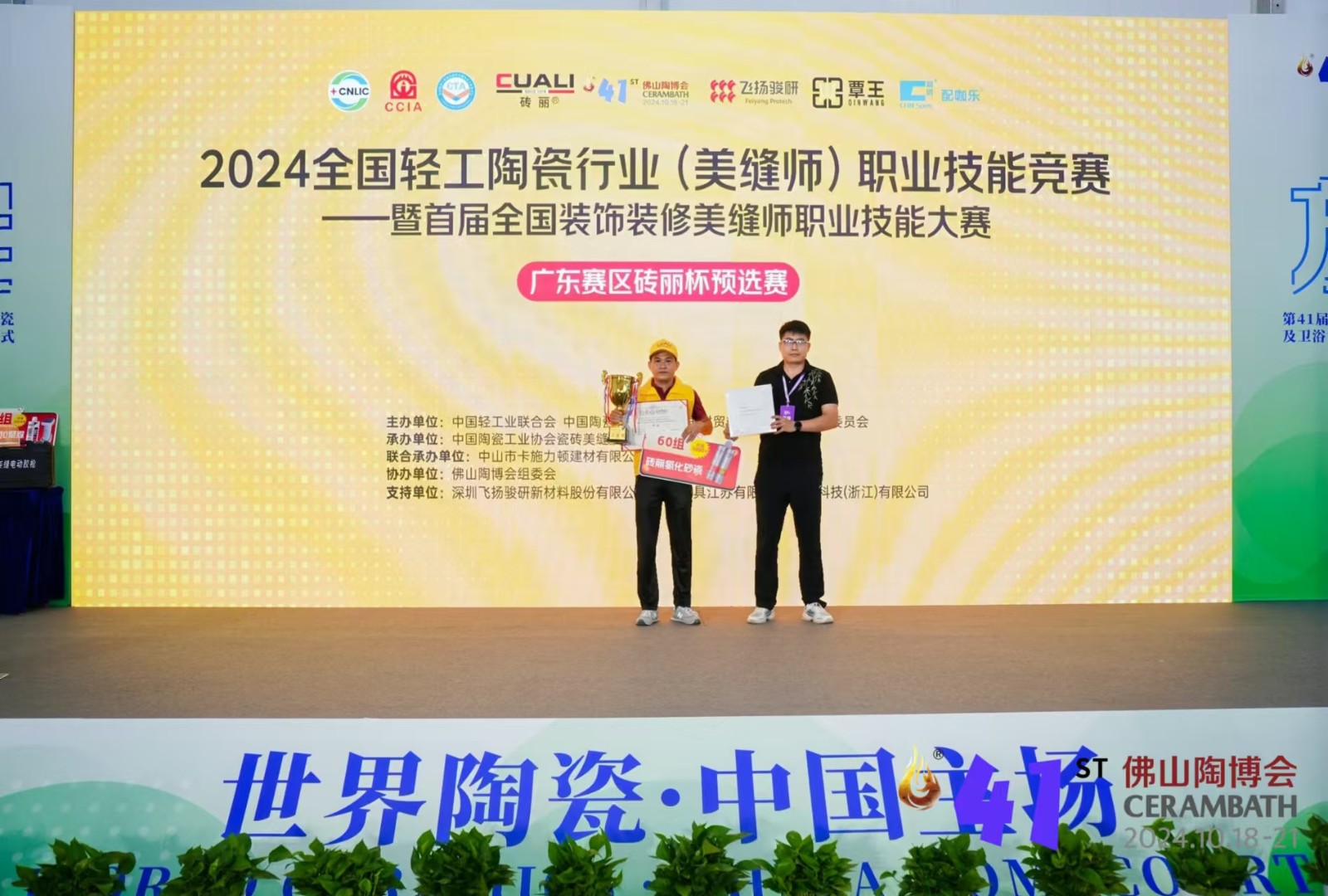 2024年10月19日,备受瞩目的2024全国轻工陶瓷行业(美缝师)职业技能竞赛—暨首届全国装饰装修美缝师职业技能大赛广东赛区砖丽杯预选赛在佛山国际会议展览中心展馆隆重举行并圆满落幕。本次大赛由中国轻工业联合会、中国陶瓷工业协会、中国财贸轻纺烟草工会全国委员会共同主办、中国陶瓷工业协会瓷砖美缝技术专业委员会承办,中山市卡施力顿建材有限公司联合承办,深圳飞扬骏研新材料股份有限公司、覃王工具江苏有限公司、彩谱科技(浙江)有限公司支持,与第41届佛山陶博会第六届中国美缝展同期举办。广东地区的优秀美缝师齐聚一堂,共同展示技艺,促进交流。大赛不仅为美缝行业的从业者们搭建了一个竞技与学习的平台,更推动了行业的专业化和标准化进程。