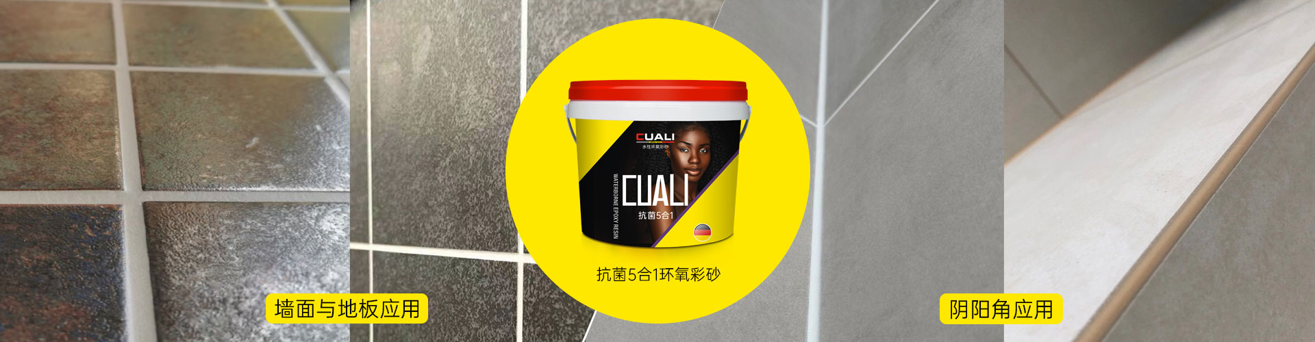 环氧彩砂因其独具的亚光质感效果,超长的使用寿命,室内外可用的适应能力,水性环保的产品属性,工艺繁杂而讲究,目前已成为高端美缝的主流产品。CUALI砖丽®“抗菌五合一”水性环氧彩砂填缝剂,可提供120色供业主选择,同时还可以提供颜色定制服务,以满足业主的个性化需求。环氧彩砂推出市场五年来,历经数次升级迭代,采用创新抗菌配方,对葡萄菌和大肠杆菌、黑曲菌等细菌有杀灭和抑止功能。抗菌五合一水性环氧彩砂填缝剂全面解决家居缝隙问题,是新一代功能型高端美缝产品。