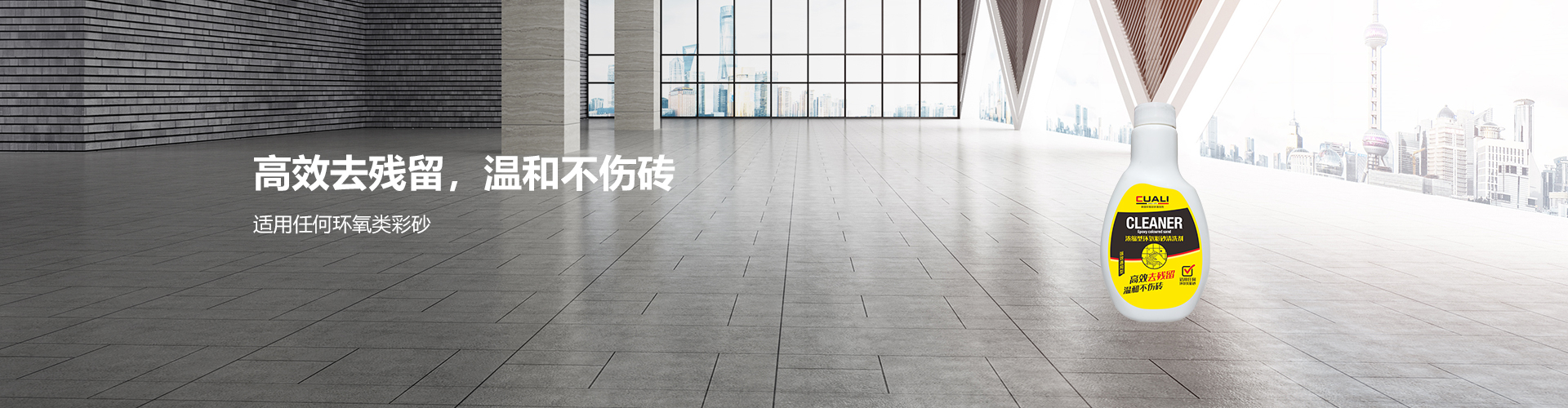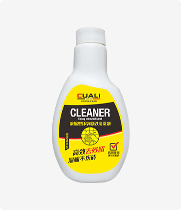 CUALI砖丽®“环氧彩砂清洗剂”可有效解决残留在瓷砖上表面并已硬化的环氧彩砂。采用“强效浓缩型”配方,适用CUALI砖丽®其它品牌的环氧彩砂。高效去残留,温和不伤砖。