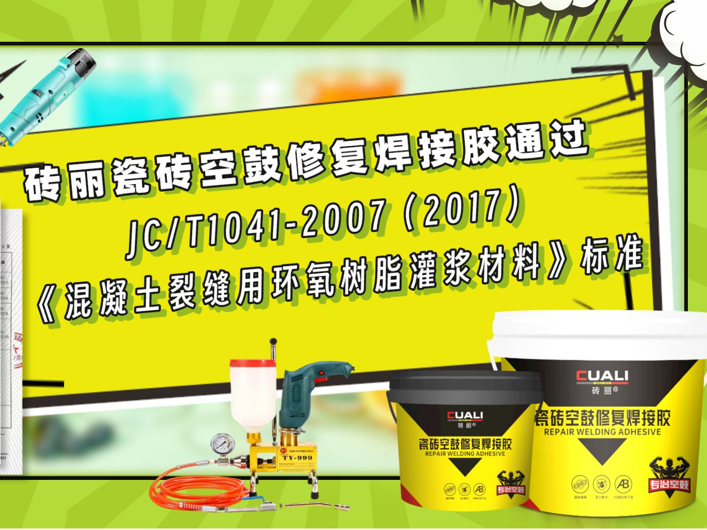 砖丽瓷砖空鼓修复焊接胶通过JC/T1041-2007(2017)《混凝土裂缝用环氧树脂灌浆材料》测试标准